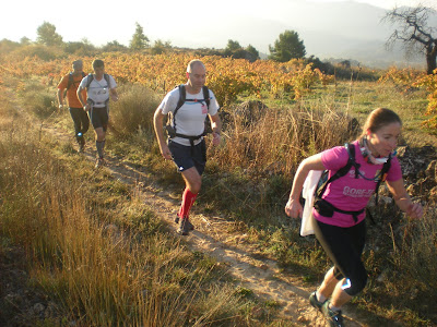 Com cada any els companys/es de Tivissa ens regalen amb una cursa molt xula, molt ben organitzada i com nó...duríssima, a més, aquest any, gràcies a les últimes pluges bastant perillosa (pregunteu-l’hi al Jordi B. i als seus set punts extres). La sortida com sempre, un petit tomb pel poble per estirar el grup, i cap amunt que hi falta gent, i aixi va ser un constant puja-baixa, per uns camins força drets i amb molts trams oberts de nou per a la cursa, cosa que agraïm els habituals a la zona, per coneixer paratges desconeguts. També l’impresionant passeig per adalt de la cresta amb vistes xulíssimes del Delta, bé els que ho van poder fer, jo prou feina tenia en mirar al terra per no fotrem de lloros. I la baixada final pel lloc més tècnic i que gràcies al fang el feia extremadament perillos, ...però tots cap avall, menys mal de les cordes fixes.